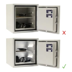 Totot LED svetlo vám spoľahlivo zabezpečí pohodlné osvetlenie vnútorného priestoru trezoru. Vďaka integrovanej technológii senzorového zapínania dokáže automaticky reagovať na otvorenie dverí trezoru, čím sa svetlo rozsvieti bez potreby manuálneho vypínania alebo zapínania. Svetlo je vybavené 16 LED diódami, ktoré poskytujú jasné a rovnomerné osvetlenie, pričom zároveň zaručujú nízku spotrebu energie a dlhú životnosť.