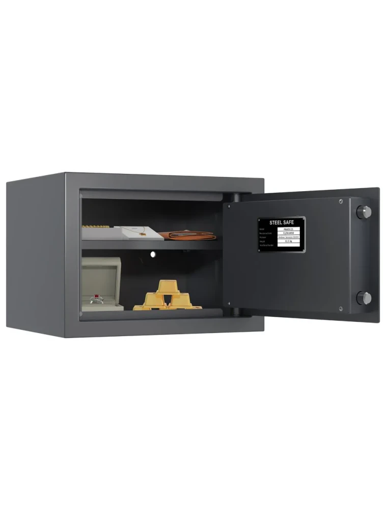 Sejf Praktik 25 je vhodný na uloženie cenností, dokumentov, ale aj zbraní a munície. Uzamykanie sejfu je zabezpečené certifikovaným zámkom triedy A podľa ČSN EN 1300. Sejf je vybavený jednou vyberateľnou poličkou, ktorá umožňuje prehľadnejšie usporiadanie vnútorného priestoru a uložených predmetov.
