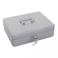 Malá uzamykateľná pokladnička s priehradkami na mince a bankovky. Tlačidlo vedľa zámku umožňuje rýchle otváranie pokladničky - po jeho stlačení sa veko pokladničky automaticky otvorí.