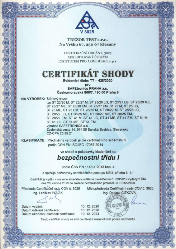 | Bezpečnostná trieda | I. (EN 1143-1 ) |