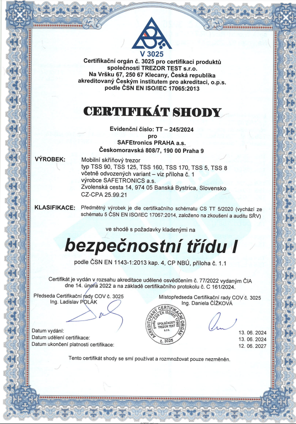 | Bezpečnostná trieda | I. ( EN 1143-1) |